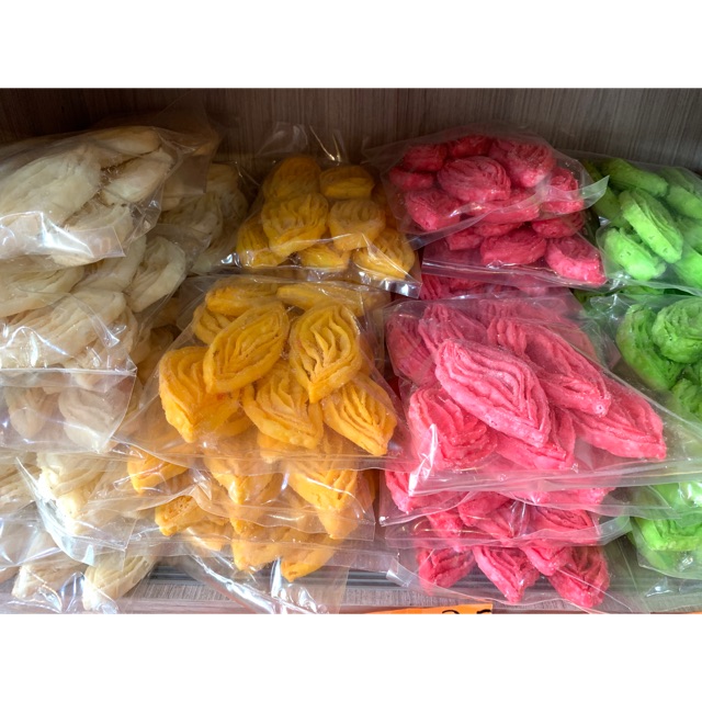 Kudapan kuih tiram, ada yang panggil kuih lidah buaya, bujang lapuk, sabana, kapal terbang dan.